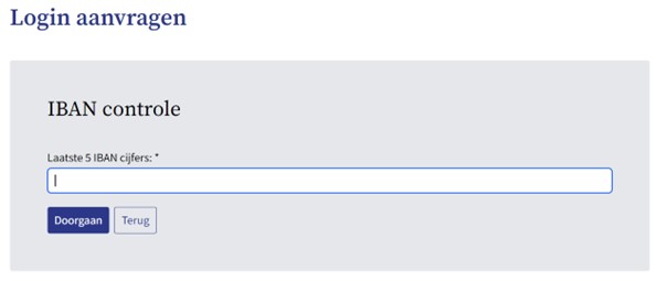 Vul de laatste 5 cijfers van uw IBAN (rekeningnummer) in en klik op de knop ‘Doorgaan’.