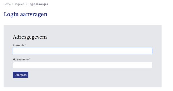 Vul uw postcode en huisnummer in en klik op de knop ‘Doorgaan’.